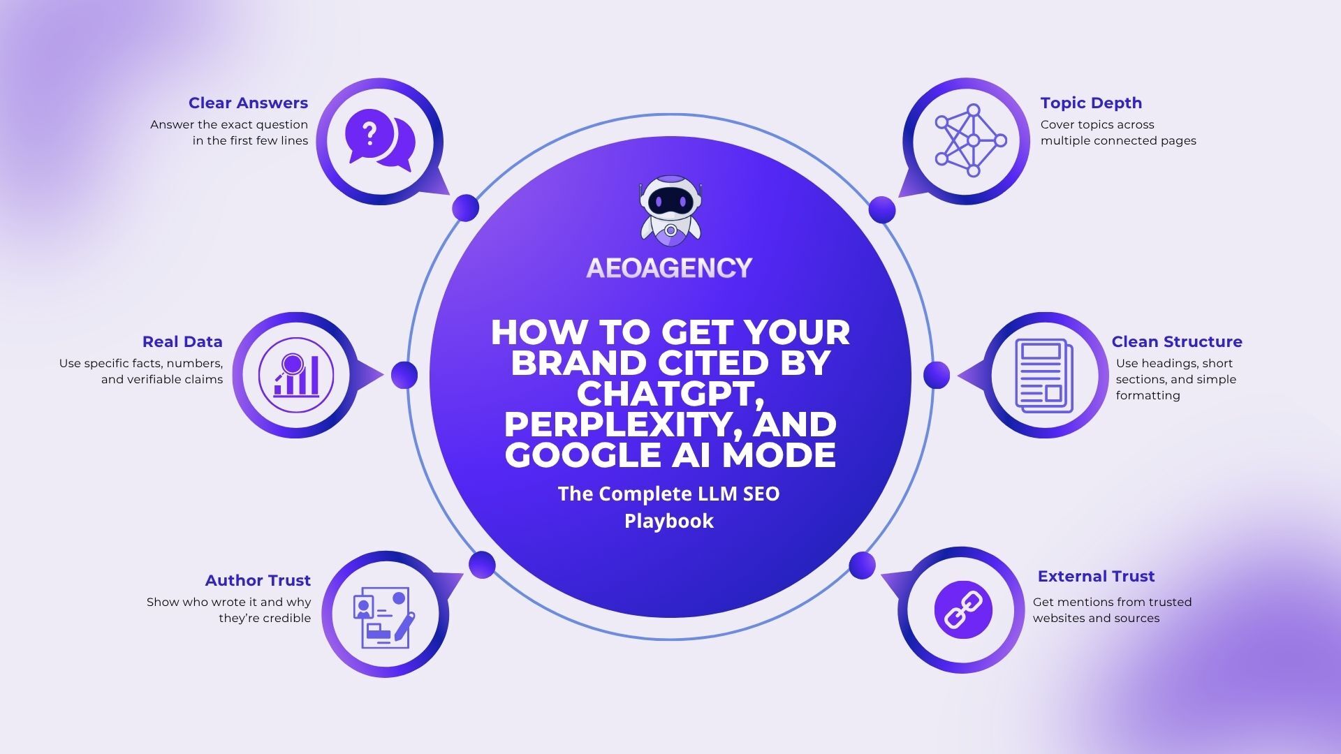 A single well-written page on a topic is less likely to be cited than a site that has multiple interlinked pages covering that topic from different angles. AI tools read topical signals. A website that clearly specializes in LLM SEO with a pillar page, cluster articles, and an FAQ page all linking together reads as more authoritative than a site with one stray article on the topic.